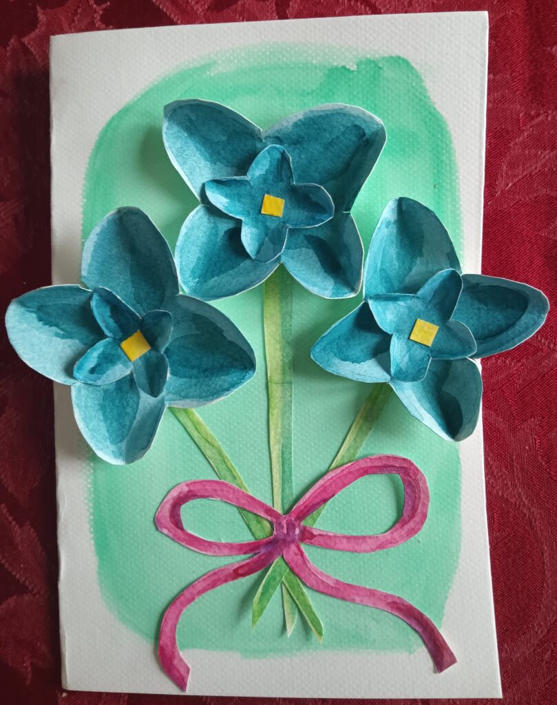 3D Flower Watercolor Card, cut and pasted watercolor paper, 2026